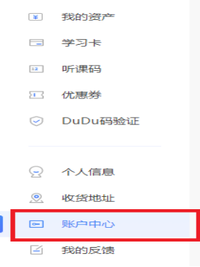 输入文都网校网址:www.wenduedu.com,进入文都网校登录界面,点击“个人中心”---“账号中心”---“账号安全”中操作。如下图所示: